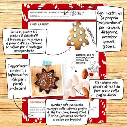 The Christmas Baking Book è consigliato dai 5 anni in poi, con la supervisione di un adulto, è il loro ricettario da grandi il primo vero ricettario interattivo con ricette semplificate per favorirne l’esecuzione in autonomia, un diario che i bambini potranno arricchire di idee, disegni, racconti; un libro di quelli da giocare, scrivere, sgualcire e magari prestare alla mamma quando vorrà realizzare una buona e sana merenda fatta in casa!
